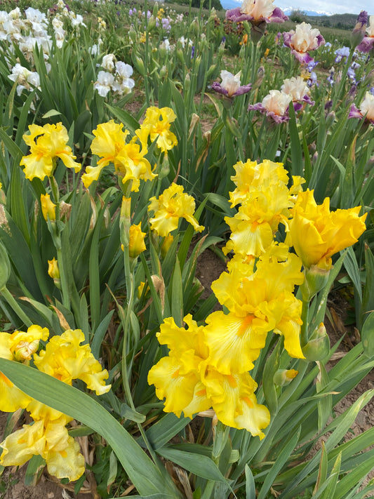 These iris have yellow in their bloom as a "major" color. Other colors in this category are gold and cream.