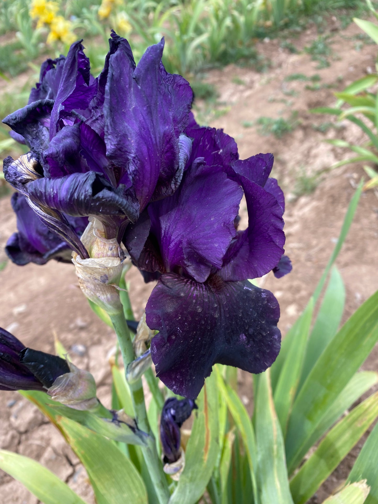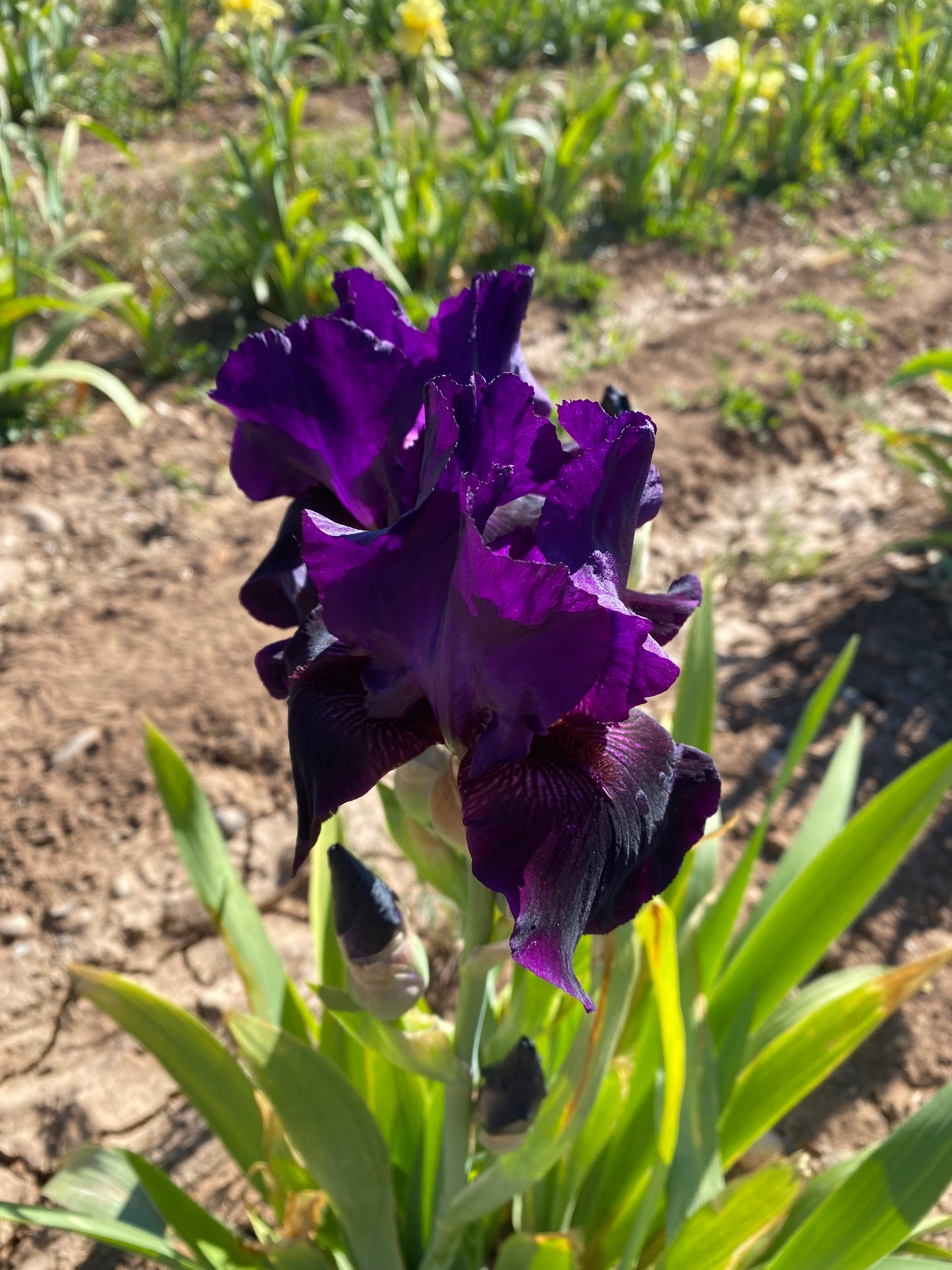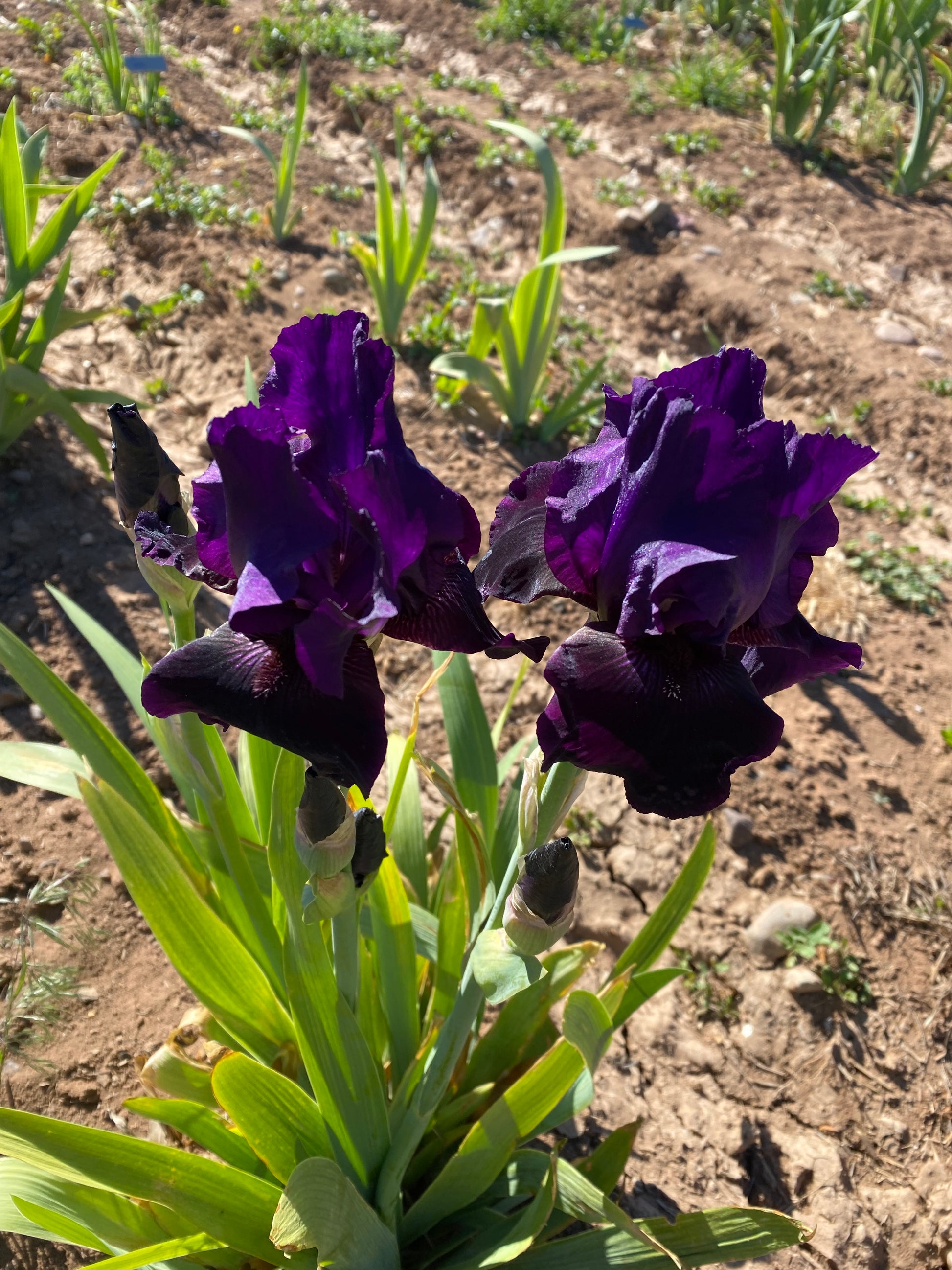 ‘Black Flag’ (Harold Stahly, R. 1983). TB, 38″ (97 cm). Early midseason bloom. Standards very deep violet; falls deeper; self beard; moderately ruffled. Honorable Mention 1986. Award of Merit 1990