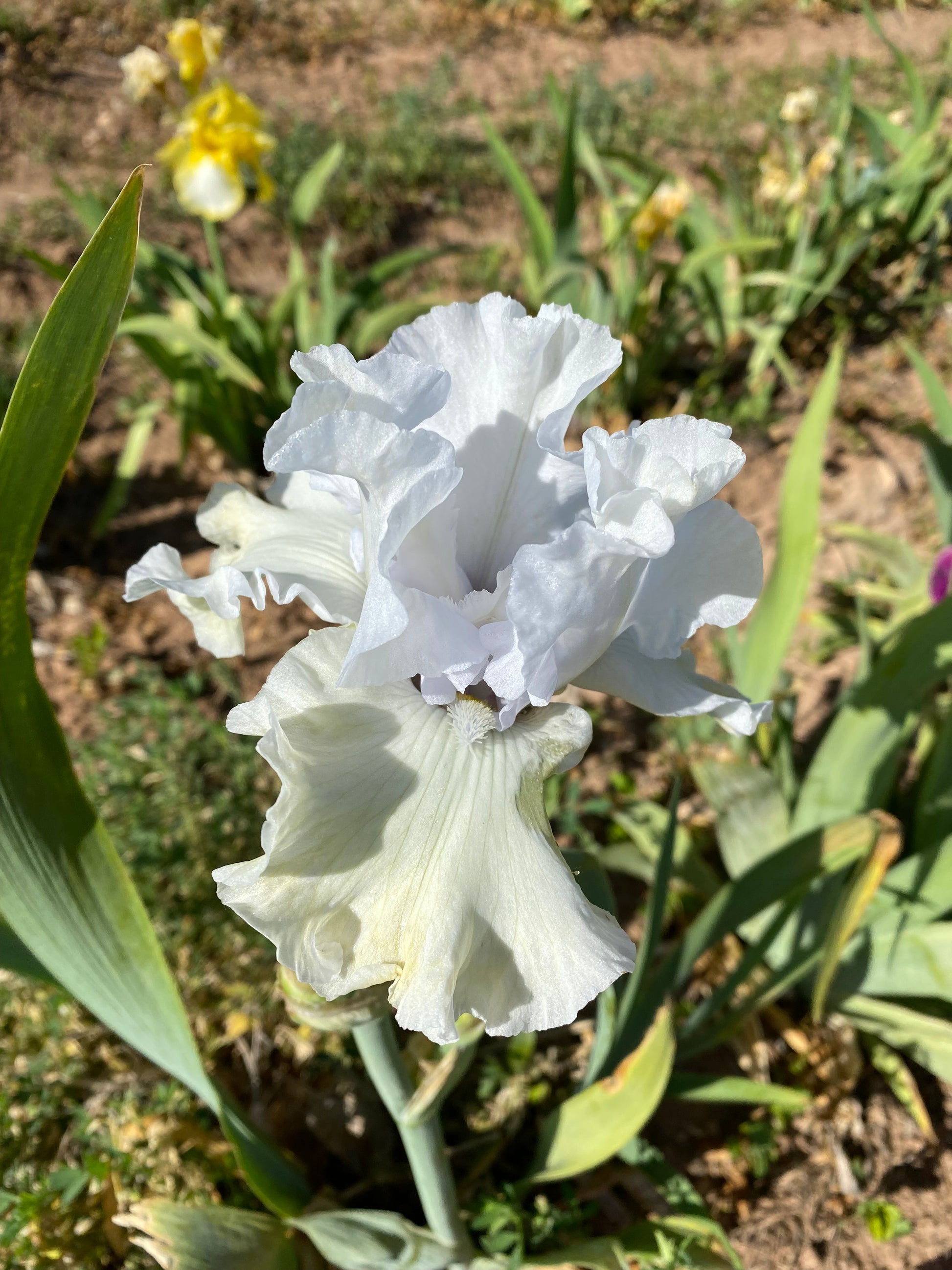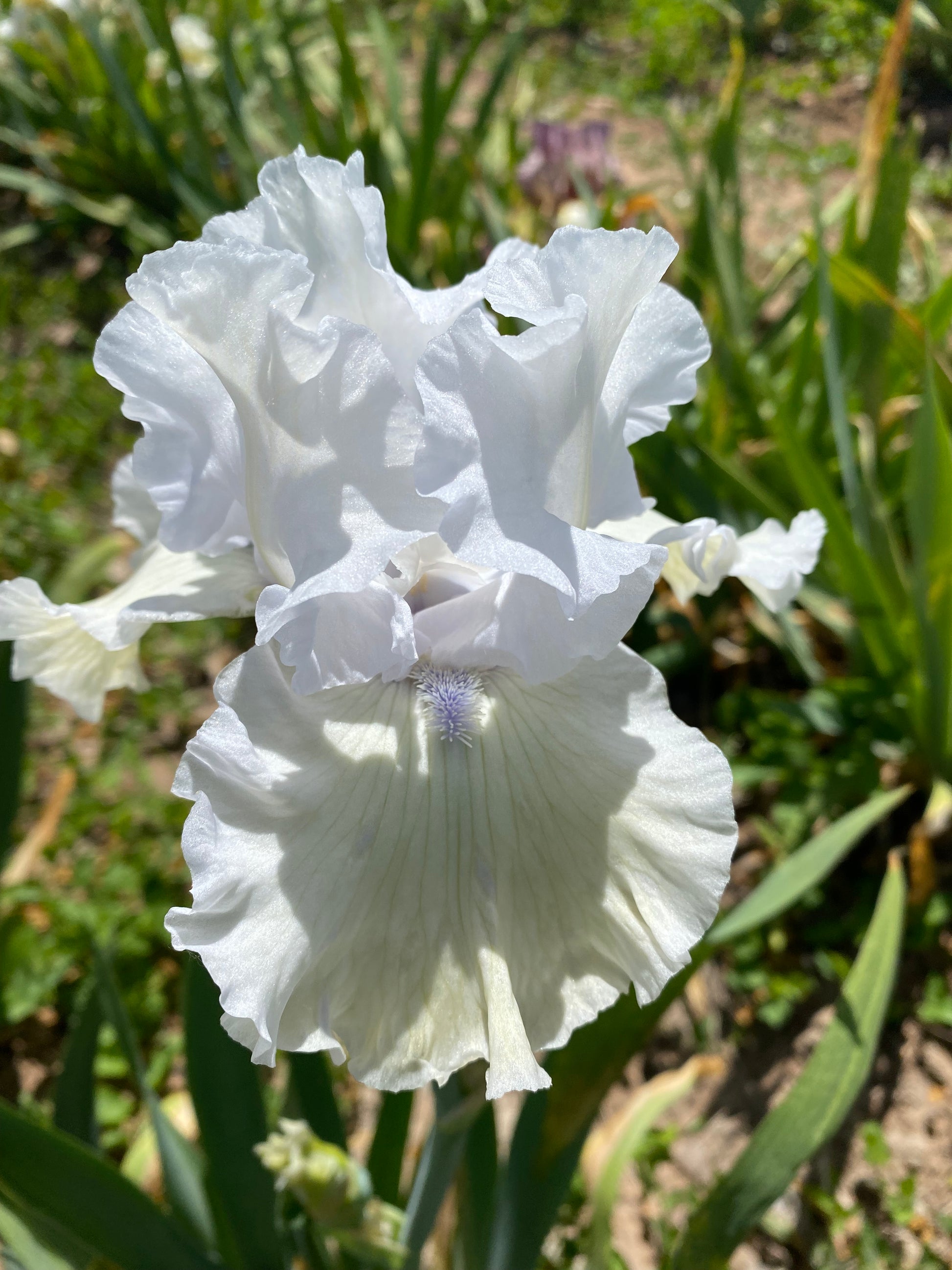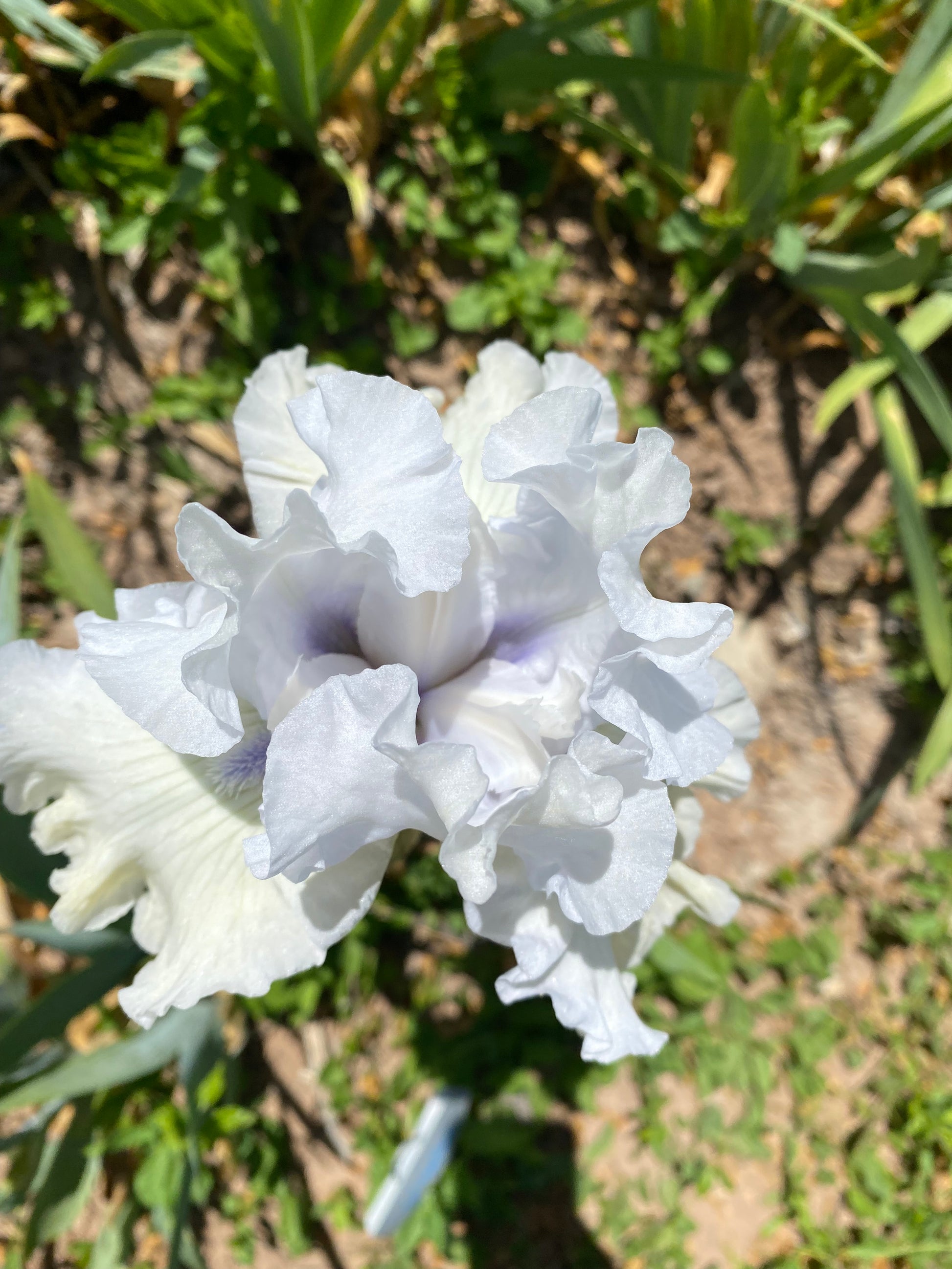 ‘Captivating’ (George Sutton, R. 1997). Seedling# G-29BR. TB, 38″ (97 cm). Late midseason bloom. Heavily ruffled diamond-dusted light lavender self; beards light lavender, hairs tipped light yellow. ‘Winterscape’ X ‘Twice Thrilling’. Sutton 1998.