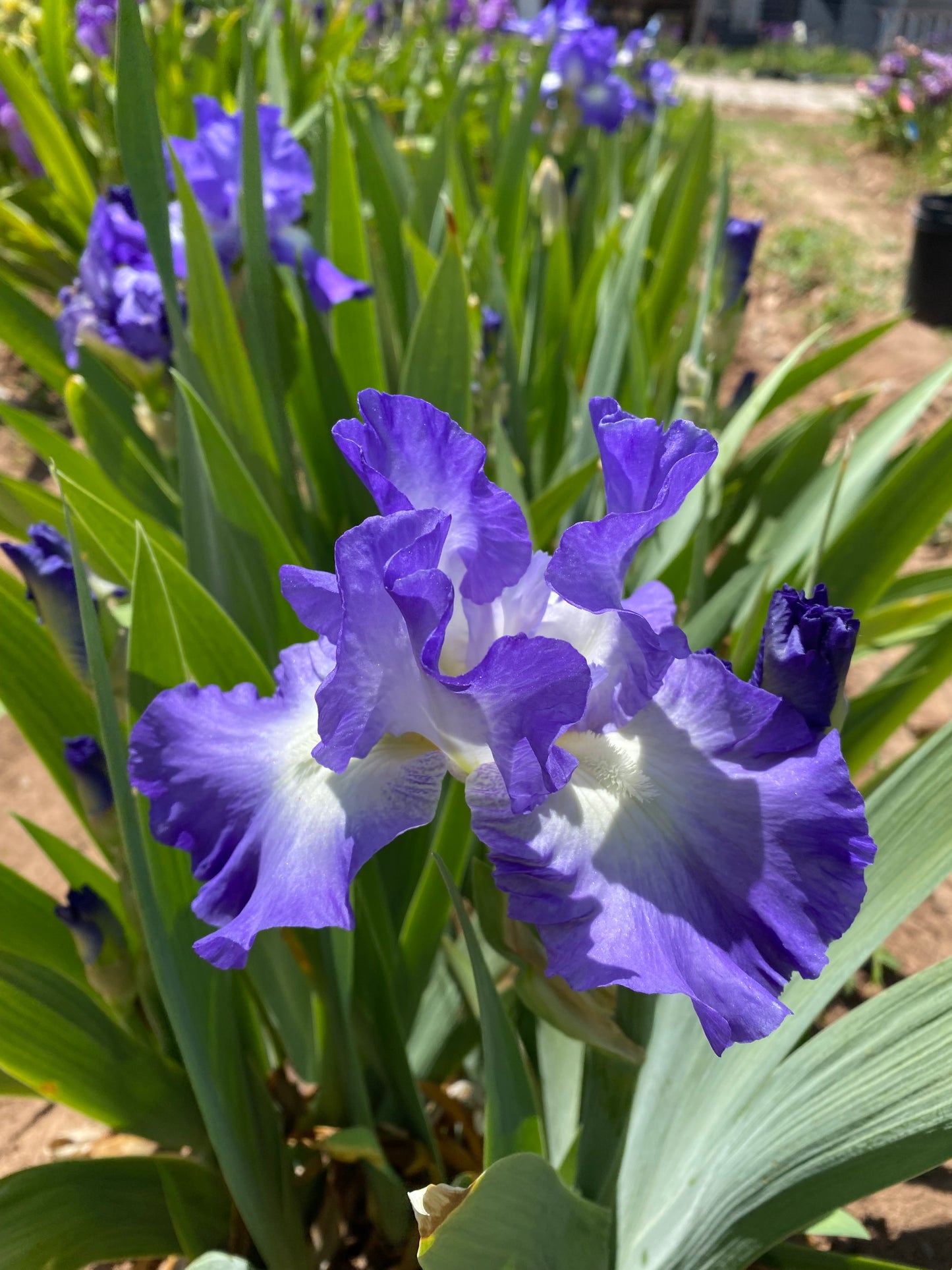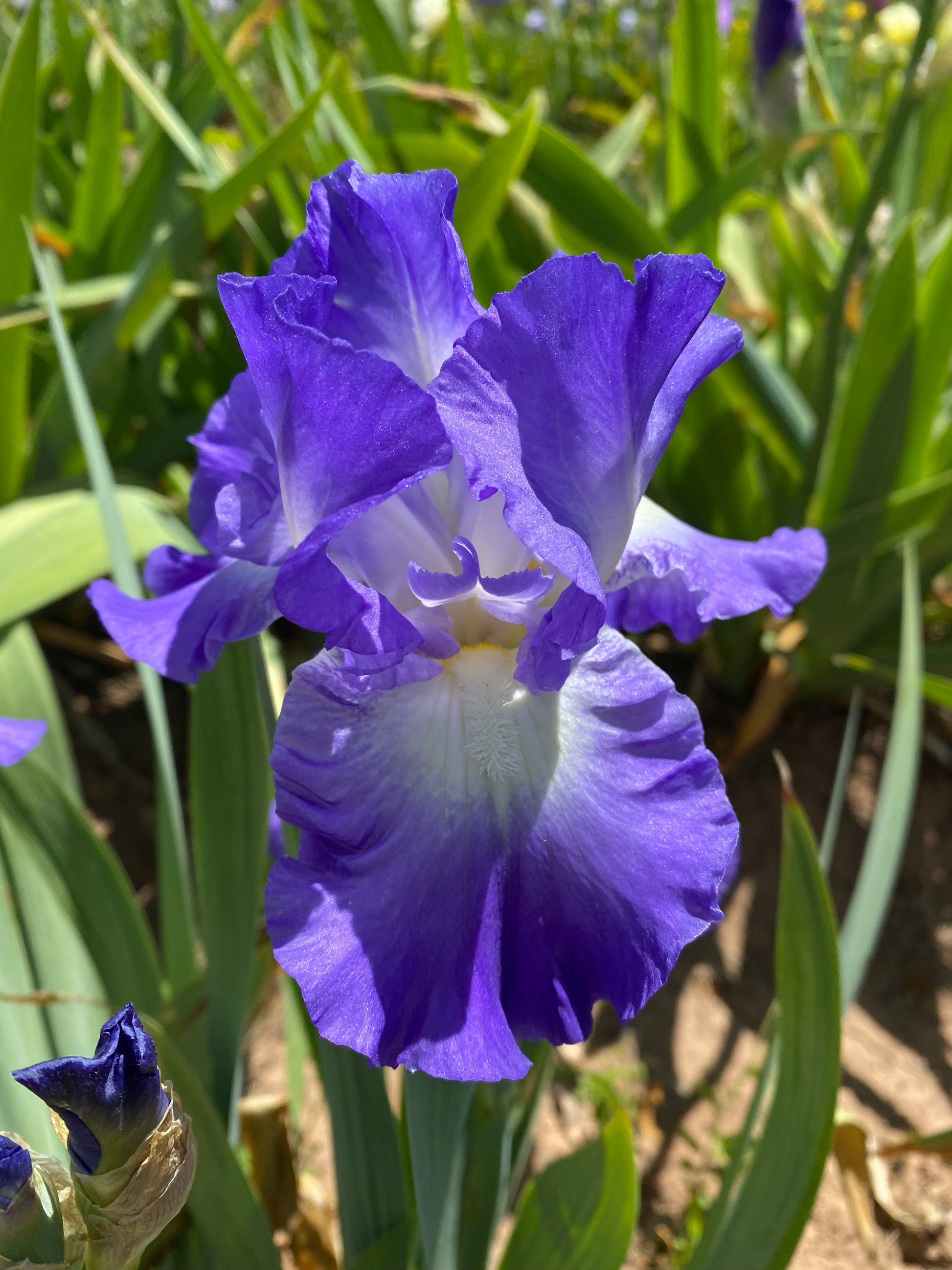 ‘City Lights’ (Mary Dunn, R. 1990). TB, 37″ (94 cm). Midseason bloom. Standards deep violet blue, lighter midrib; falls deep violet blue, large white area surrounding pale yellow beard. Said to have the fragrance of root beer.