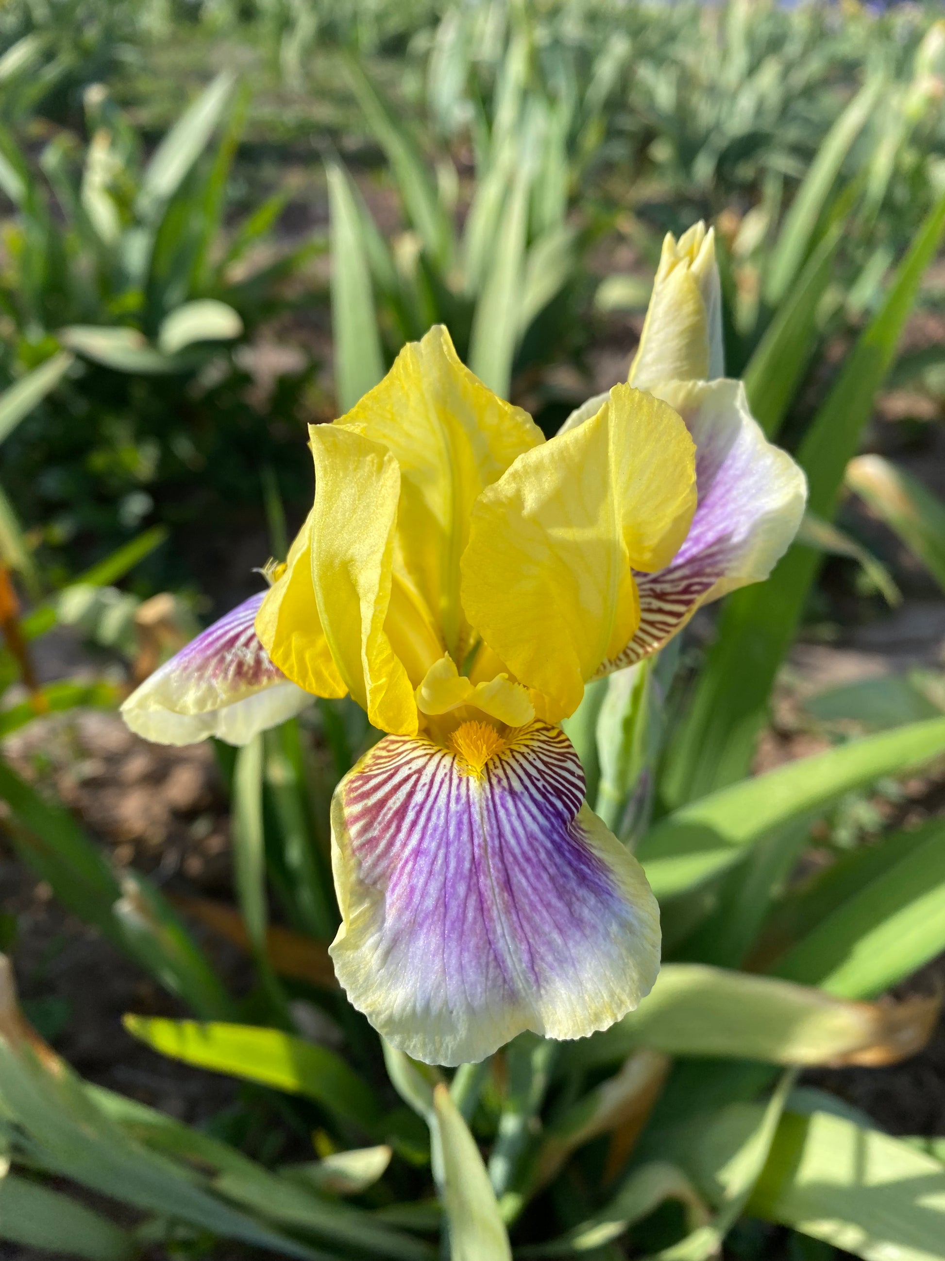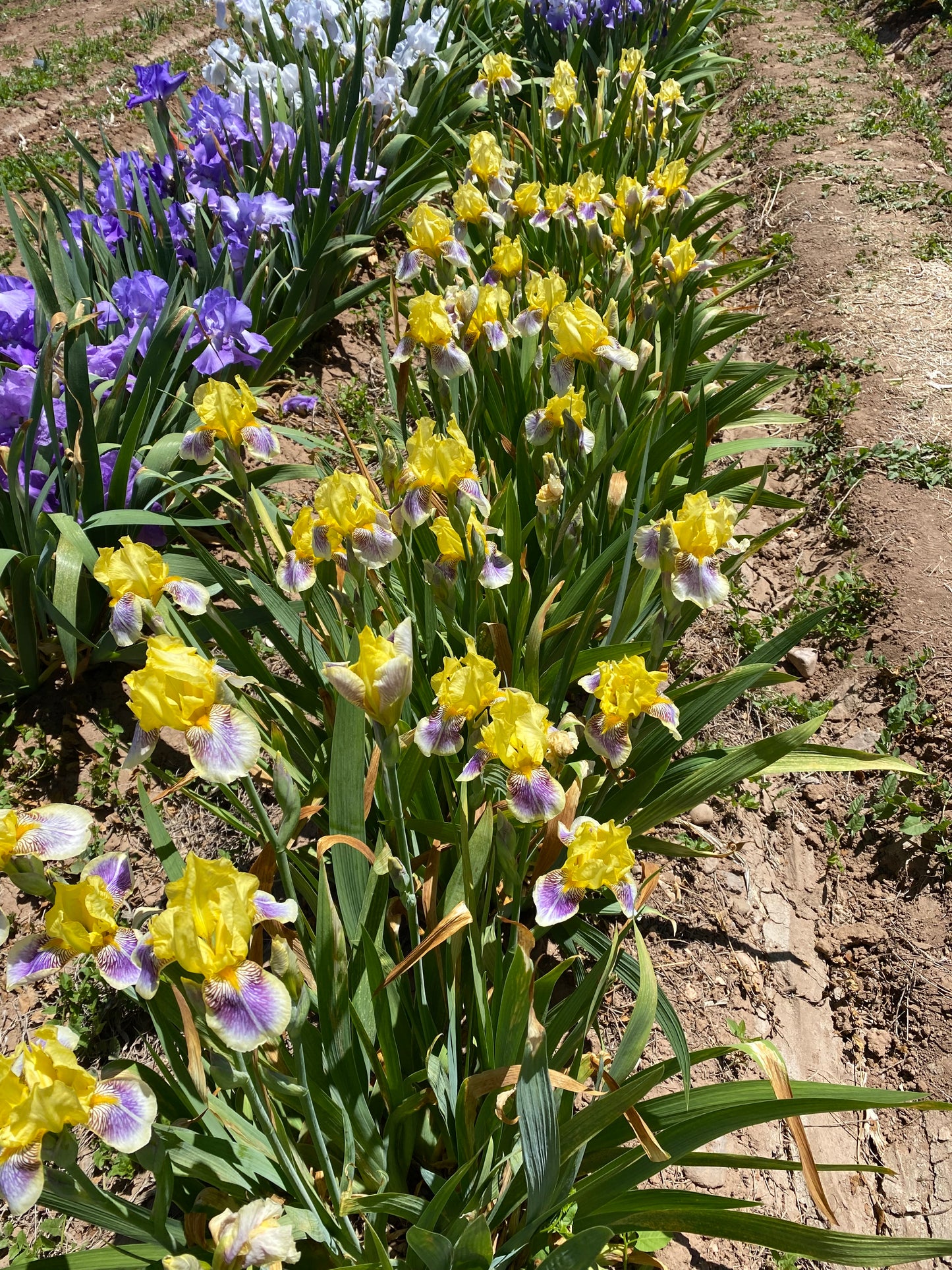 'Darius’ (Brown, 1873) DB (original classification dwarf bearded meant under 16″ in 1929, This often grows to as high as 18″, it is placed here until its proper modern classification can be determined) Midseason to late bloom. Has been described in recent years as “Standards yellow; falls white, reticulated purple, edged primrose; orange beard.”