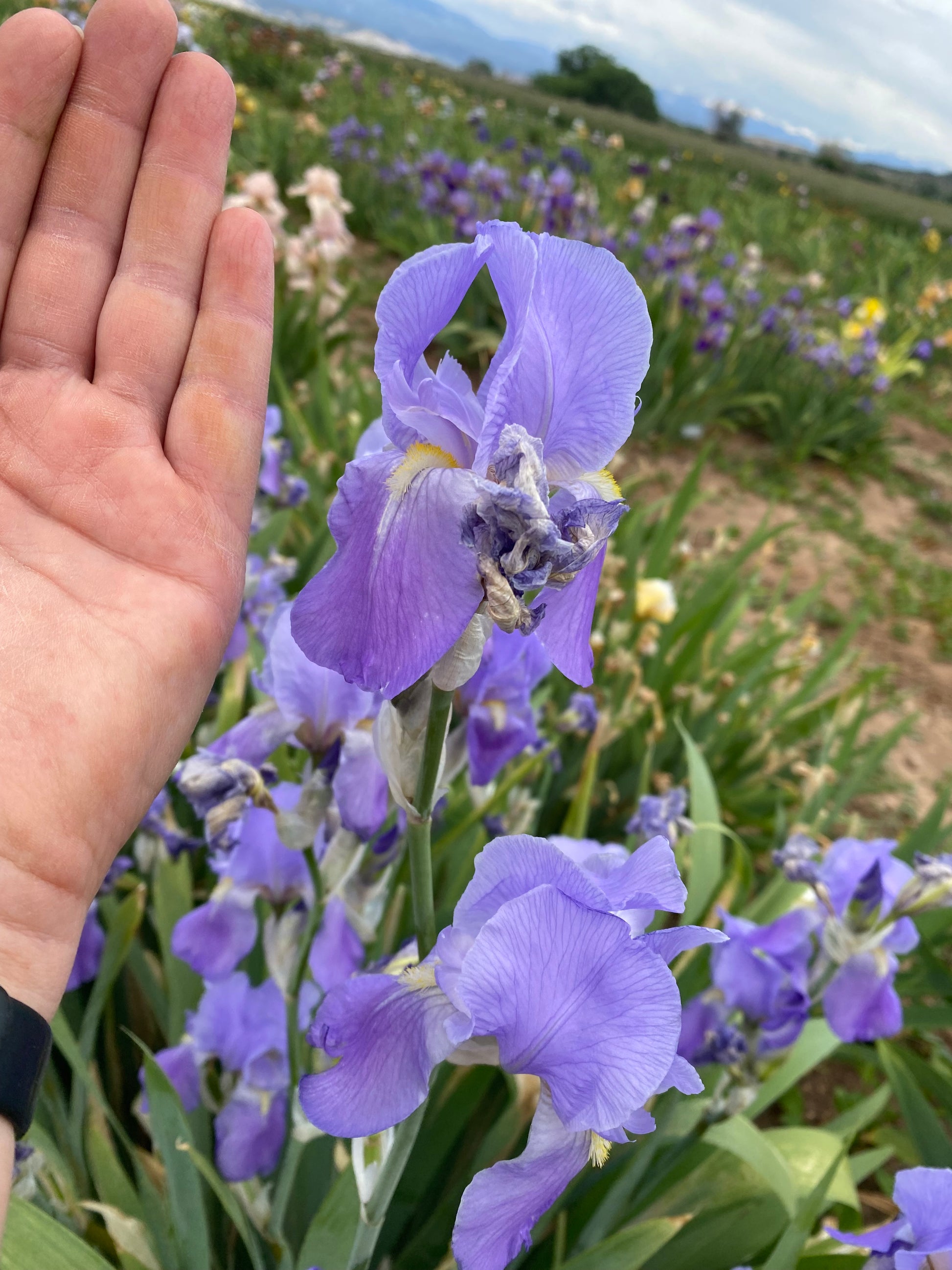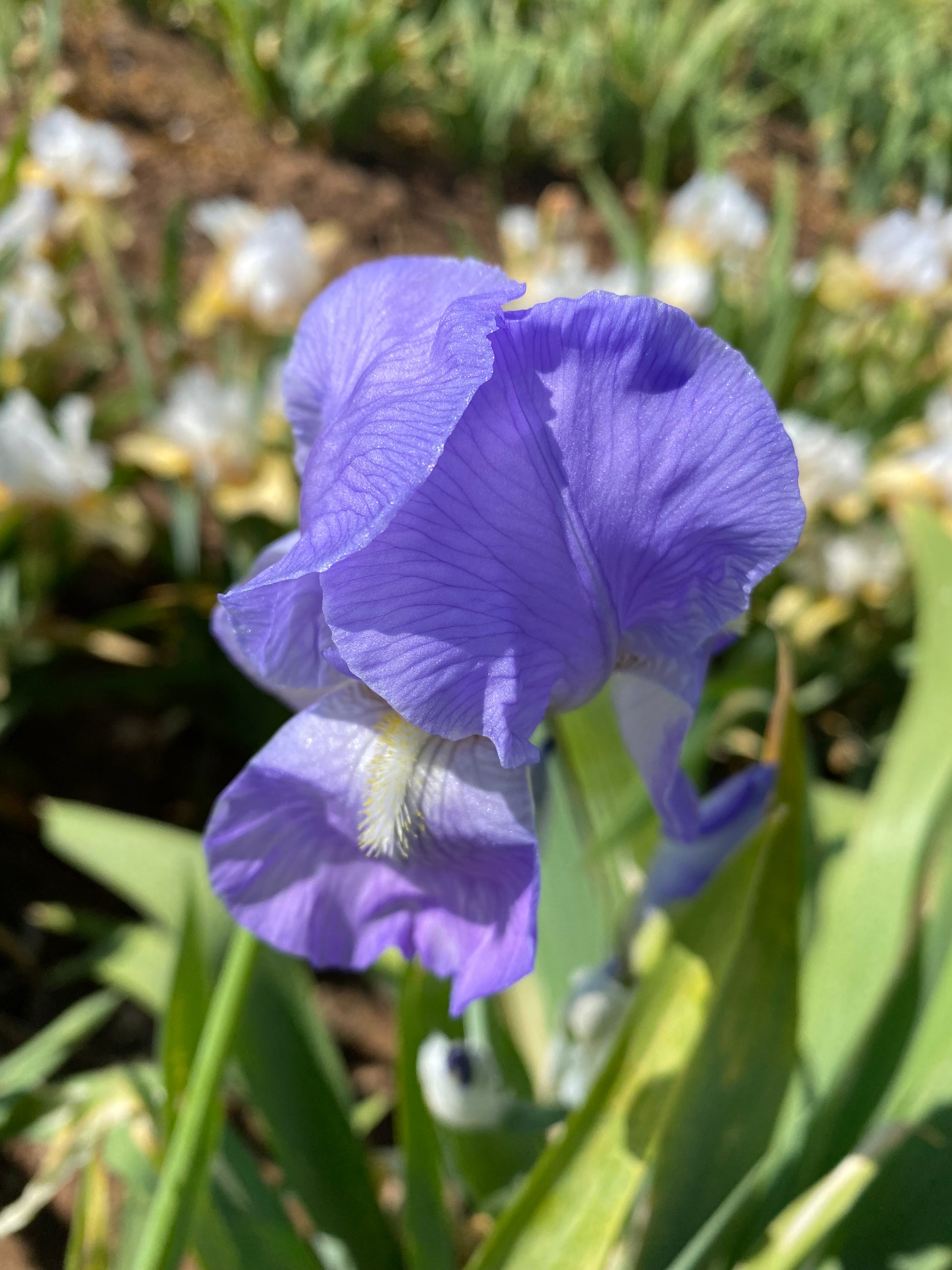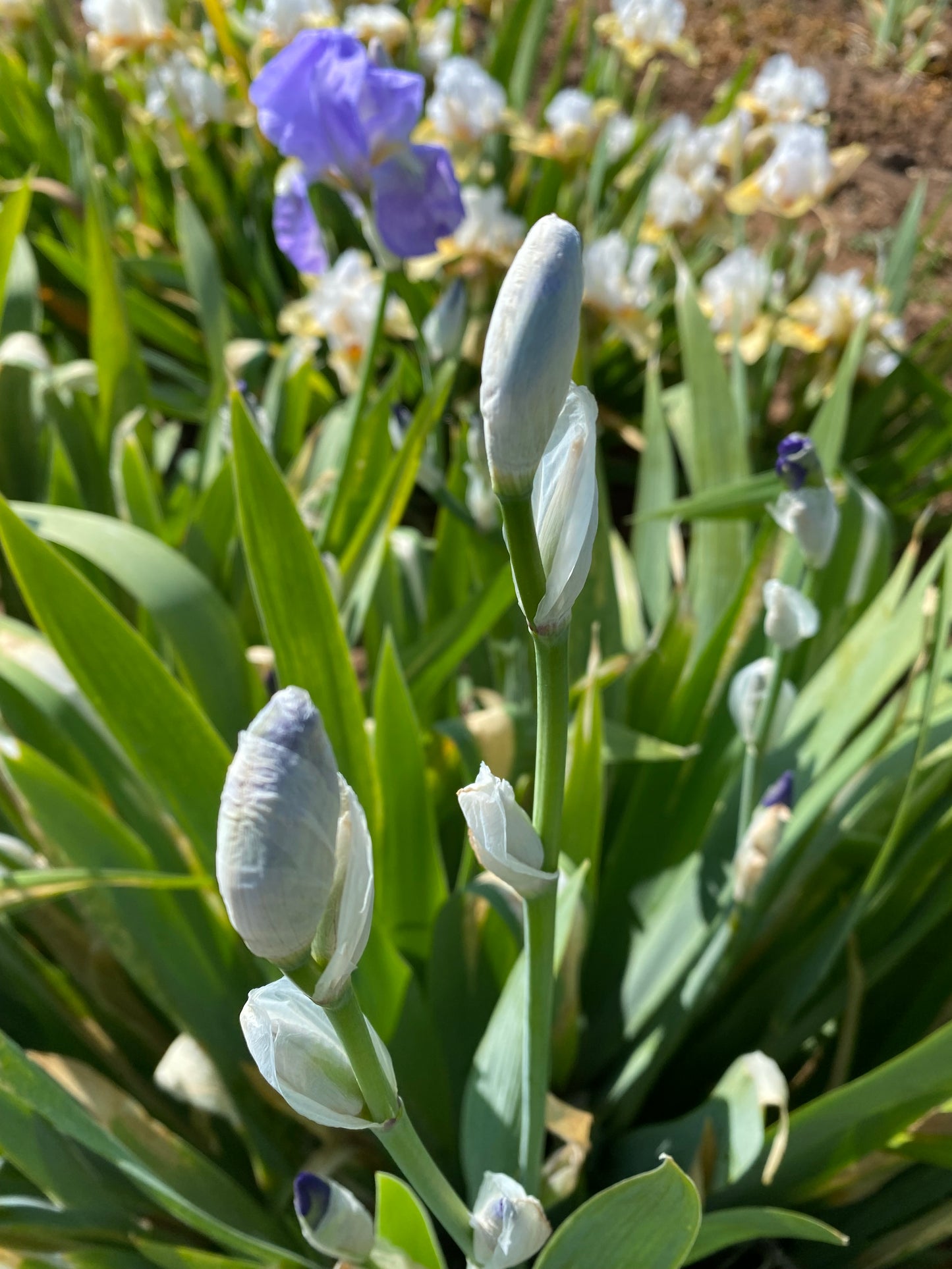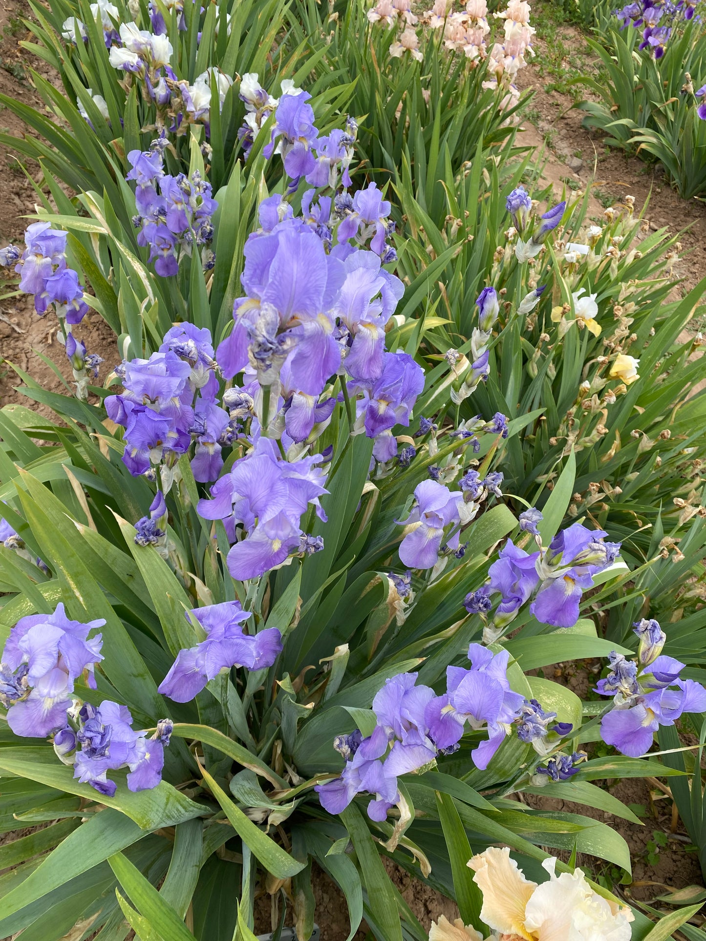 This is a Tall bearded iris, but with smaller flowers like a miniature. It dates back to 1900 (so that would have been what the tall bearded look like) It is lavender in color. The beard is lemon yellow, It smells like grape soda! Very prolific. The casings of the bud look like paper and almost like they won’t bloom.