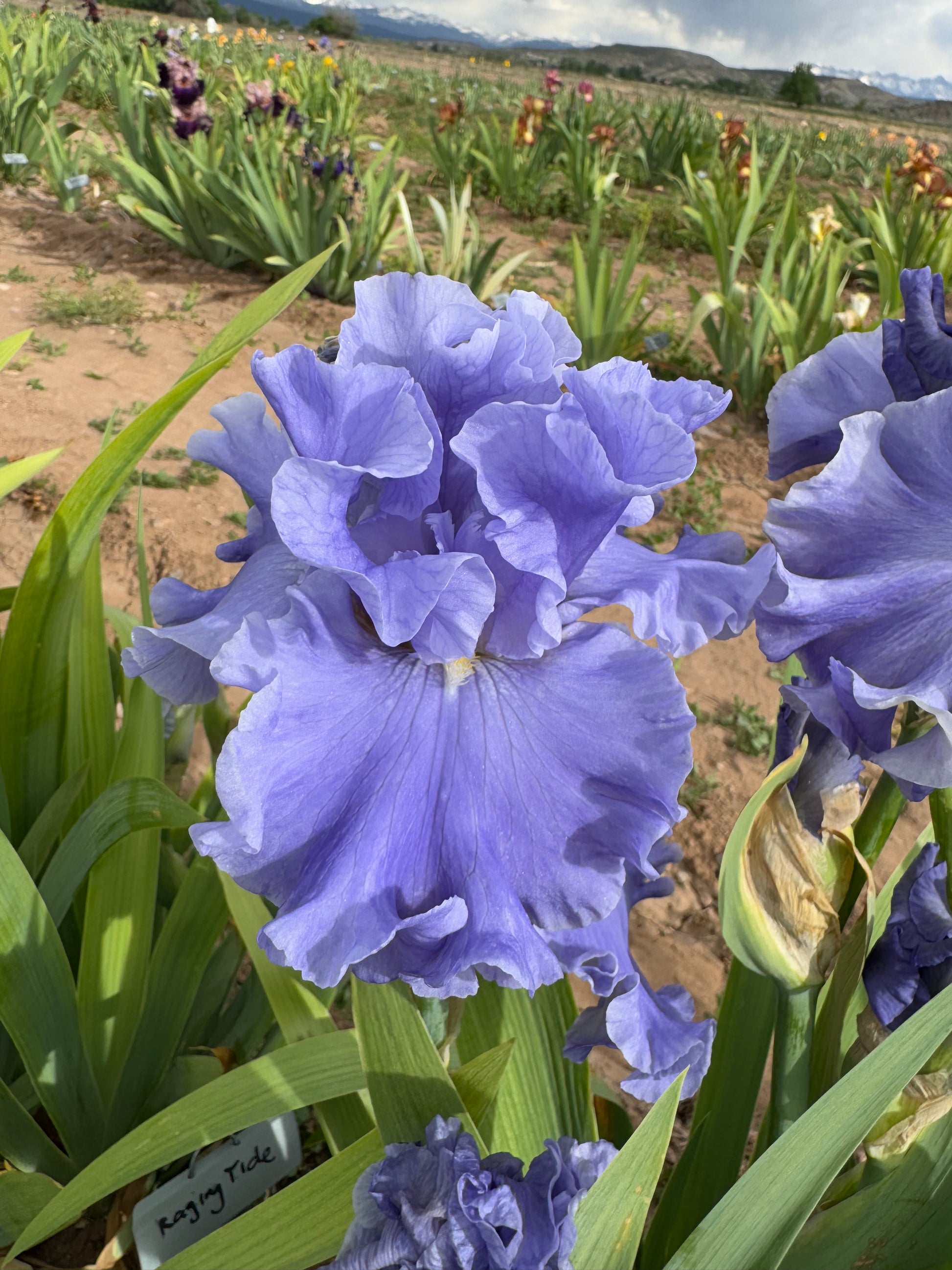 'Merchant Marine' (Keith Keppel, R. 2006). Seedling 00-261A. TB, 38" (97 cm), Midseason bloom. Standards medium blue (M&P 41-E-11); style arms lighter blue (41-C-10); falls slightly deeper medium blue (41-F-12); beards light blue, sunflower (9-L-4) in throat; ruffled. 'Yaquina Blue' X seedling# 96-16A: ('Sea Power' x 'Rippling River'). Keppel 2007. Honorable Mention 2009; Award of Merit 2011.