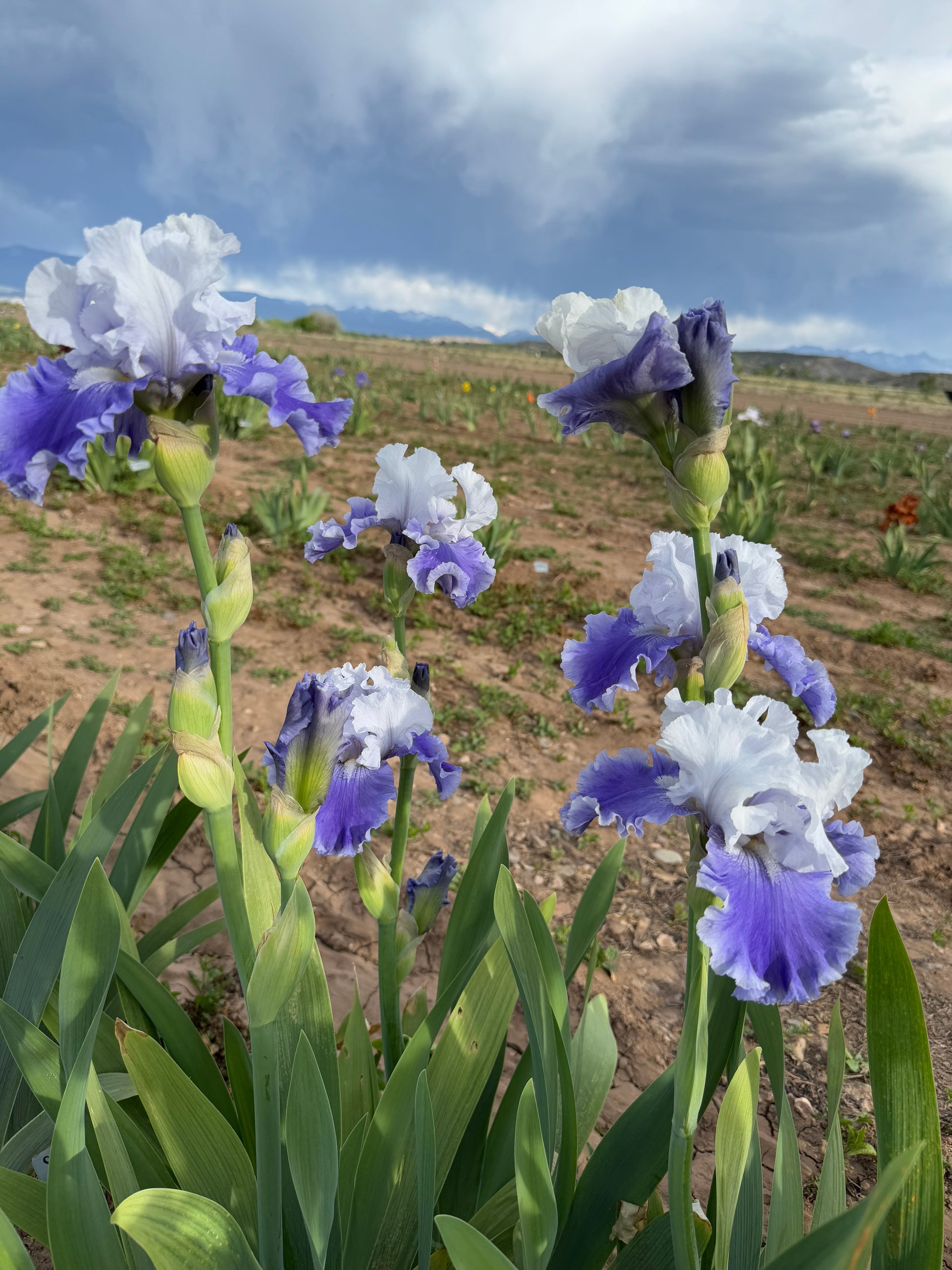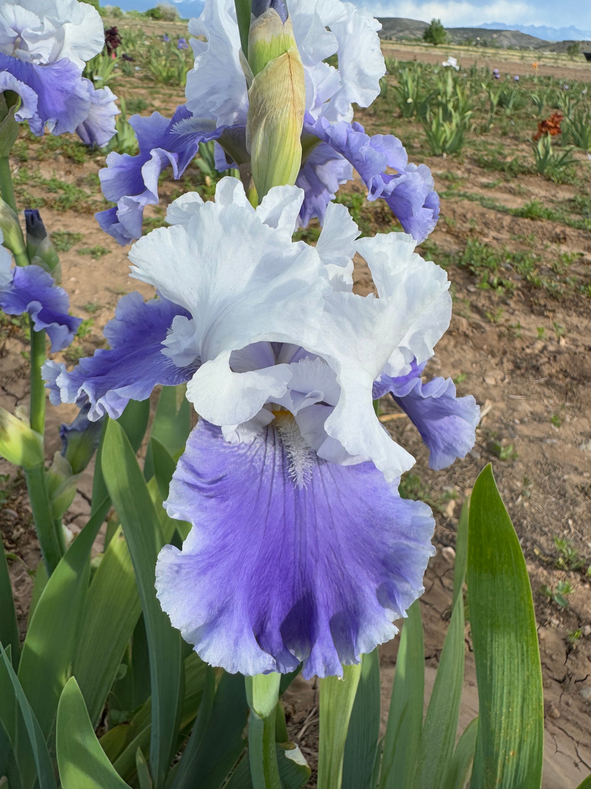 'Sierra Grande' (Schreiners, R. 1992). Seedling Y 71-B. TB, 38" (97 cm), Midseason bloom. Standards white (RHS 155C); falls blue (96B); beards light yellow, tipped white; ruffled. 'Pledge Allegiance' X 'Glistening Icicle'. Schreiner 1992. Honorable Mention 1994; Award of Merit 1996.