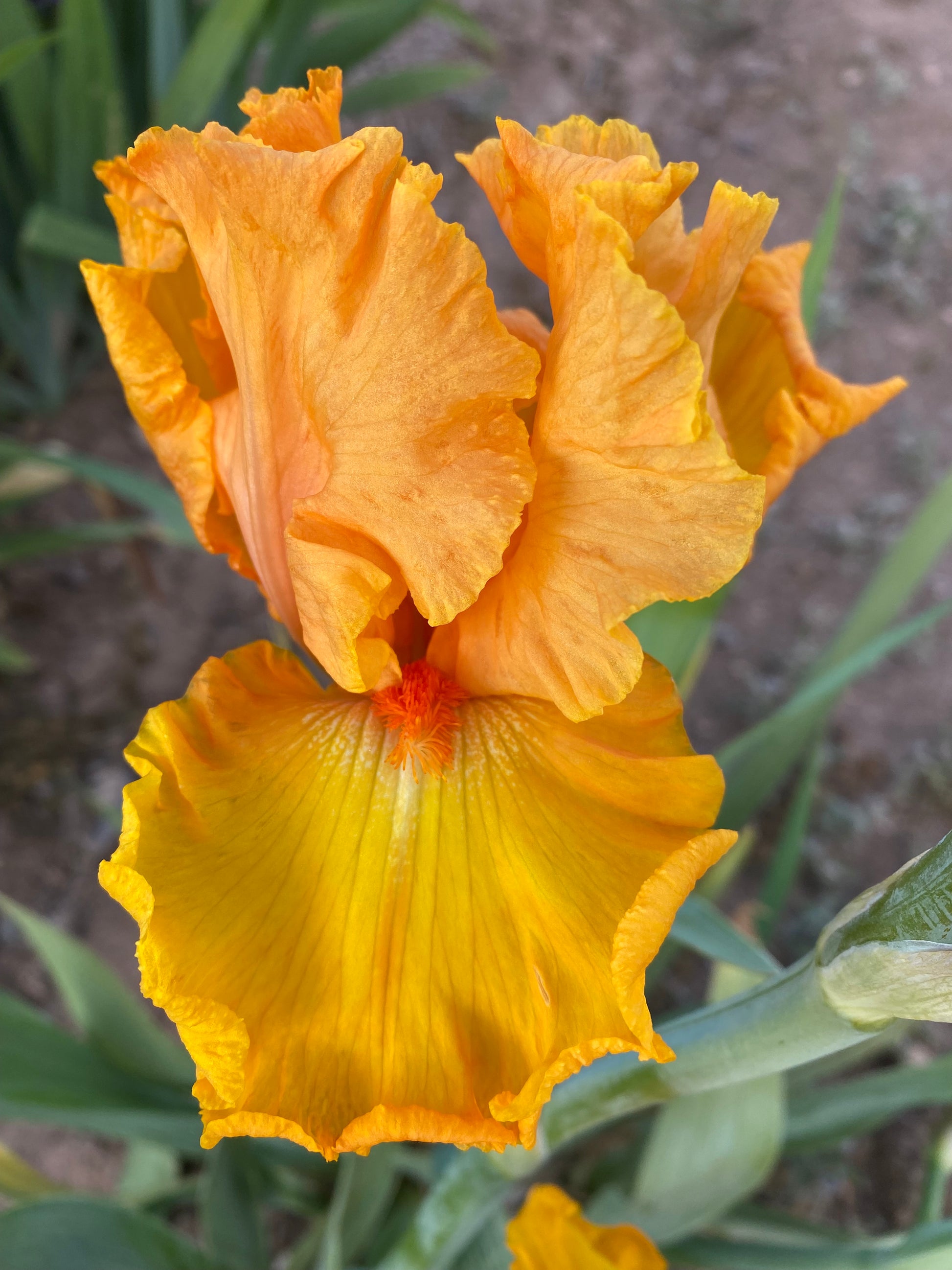 'Tumalo Sunset' (Schreiner, R. 2009). Seedling 1993 #10. TB, 38" (97 cm). Late bloom. Golden orange (RHS 14A) self; beards bright orange. Parentage unknown. Schreiner 2009.